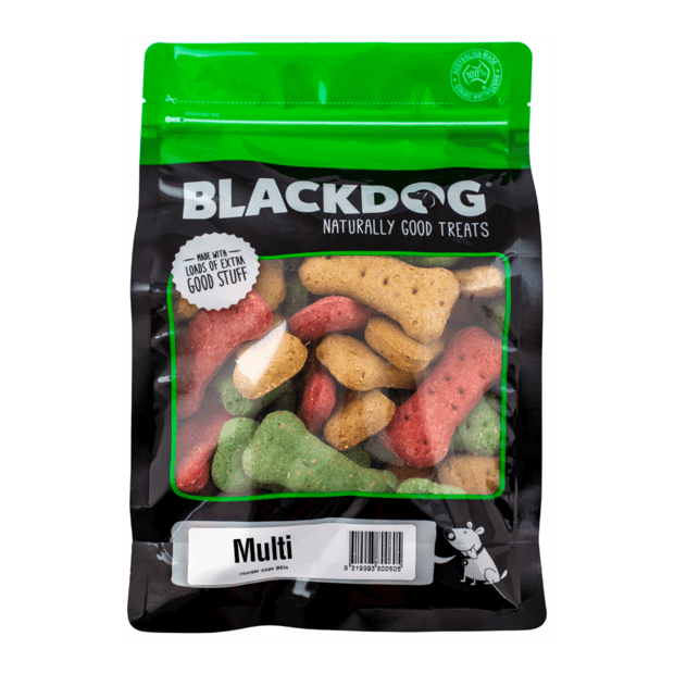These crunchy biscuits are packed with delicious natural flavours and wholesome, beneficial ingredients including flaxseed meal for a source of omega fatty acids as well as extra vitamins, minerals and antioxidants to keep your pooch in good health. Blackdog Multi Biscuits are lower in salt and sugar which makes them a delicious and healthy everyday treat.